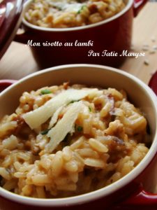 Le risotto au lambi de Tatie Maryse est une valeur sûre (cliquez ici pour la recette), que j’apprécie particulièrement. En plat principal simplement accompagné de jeunes pousses de salades mélangées ou en verrines pour un cocktail dînatoire, son goût ne laissera personne de marbre. Parce que le riz continue d’absorber les liquides après cuisson, il est préférable de prépare cette recette dans les heures qui précèdent le dîner, afin que les grains de riz demeurent bien enrobés de sauce.